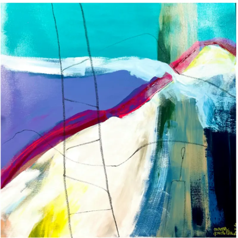 Acrílico e pastel de óleo sobre tela.